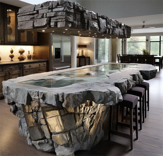 項目描述:? 水泥仿木餐桌是一種將自然元素引入室內,通過仿石材質和假山景觀設計,創造出如同置身山水之間的用餐氛圍。這類水泥仿木餐桌餐廳以仿石和假山為核心設計元素,融合了自然與人造景觀,為客人提供沉浸式的自然體驗。大量使用仿石材質打造的水泥仿木餐桌,呈現出自然石材的粗糙紋理和厚重感,賦予空間一種大自然的質樸氣息。