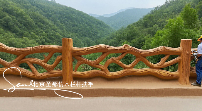 現場塑形不規則的仿木欄桿制作工藝,效果逼真
