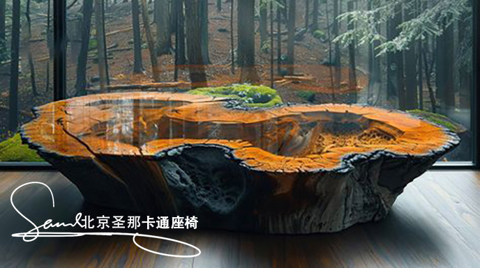 雙半圓木水泥仿木坐凳使用舒適外觀具美感