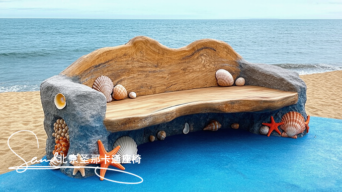 為山東日照海洋公園制作燒杉色水泥仿木坐凳