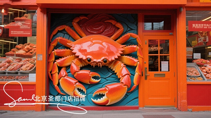 大閘蟹門店招牌使用雕塑制作,是一道美麗f 景線