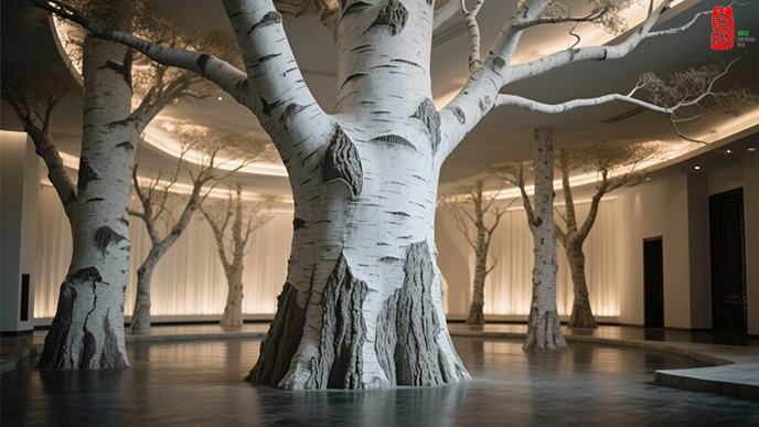 雅境與奢感共生!為財(cái)富公館打造的室內(nèi)仿真白樺樹(shù)