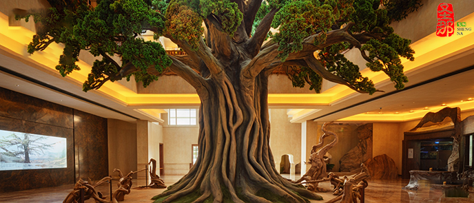 高仿真細節拉滿成都松和生態餐飲體驗館室內榕樹制作