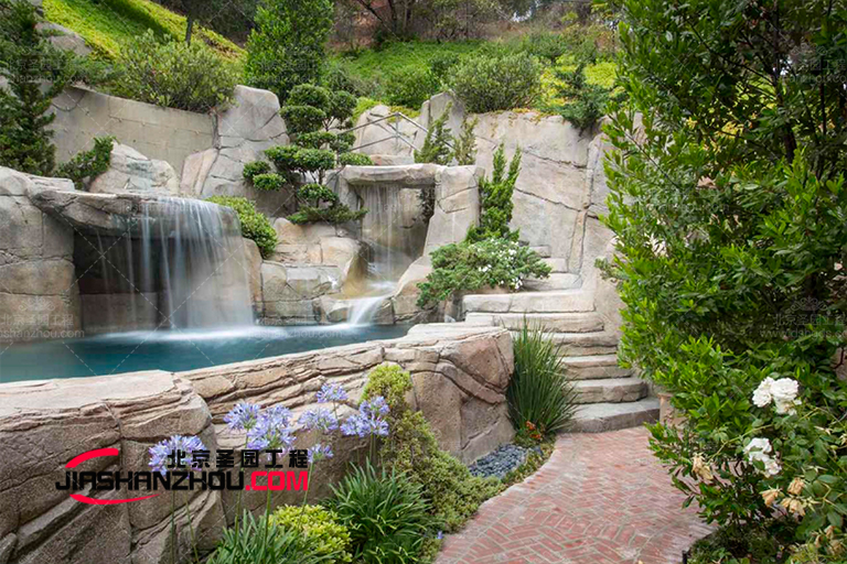 2塑石假山可以在非山區安排場外燒石和山景,使用磚、砂、水泥等比較低的價格材料。在不生產石材的地區,現代石膏或鋼筋混凝土等材料制成的塑石假山可以任意塑造,不受天然石材形狀的限制。隨著科學研究的不斷發展,小假山專用水泥材料逐漸出現,為小假山創造了良好的空間。
