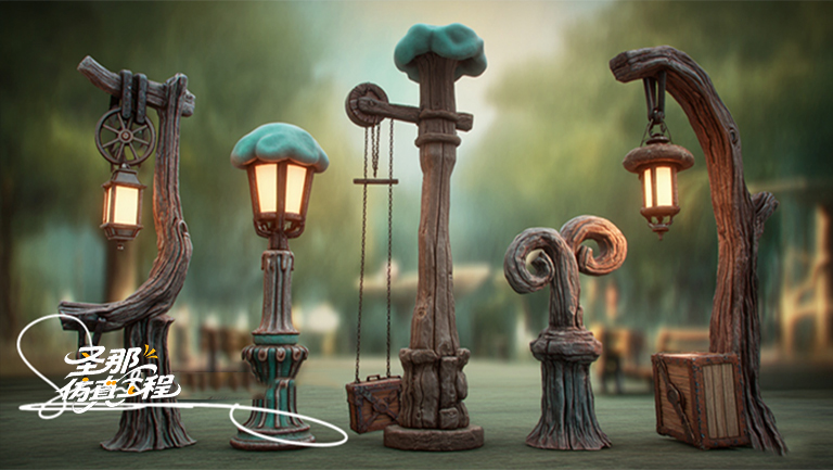 景觀包括:水泥雕塑、仿真樹、假山小景等