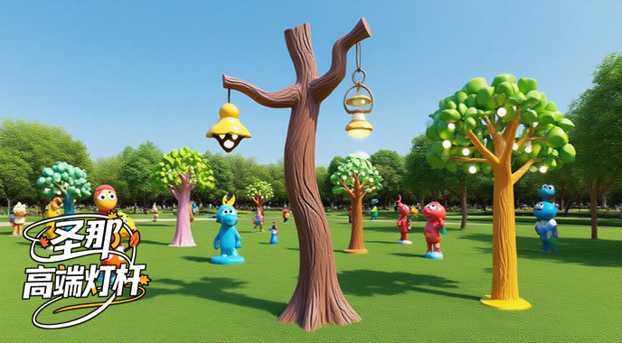 可愛又有質感的卡通燈桿,木質紋理:通過模具壓制或手工雕刻,可以呈現出木紋環、木節和裂縫。您可以參考橡木、松木等木材的粗糙紋理。卡通燈桿在水泥剛剛初凝時,使用鋼絲刷和木紋滾筒壓出不同深度的不平整凹槽。卡通燈桿干燥后,將木質色彩的氟碳涂料(從淺棕色到深棕色的漸變色)涂在表面。對部分區域進行一些化處理(如打磨以露出原始顏色)以增強時間感。